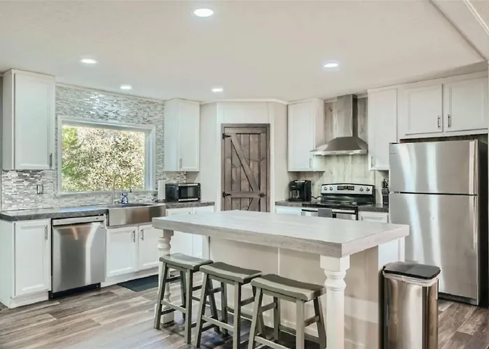 Die Villa The Hill House bietet auch eine voll ausgestattete Küchenzeile, ausgestattet mit einer Kaffee-/Teemaschine, einem Kühlschrank und einem Geschirrspüler. Von der Villa in Cedar Creek sind es 27 Minuten mit dem Auto zum Flughafen Austin-Bergstrom International.